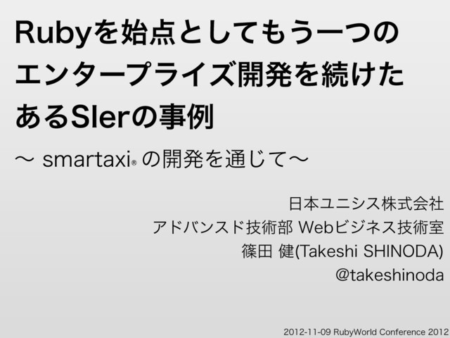 3VCZΛ࢝ͱͯ͠͏Ұͭͷ ΤϯλʔϓϥΠζ։ൃΛଓ͚ͨ ͋Δ4*FSͷࣄྫ ʙTNBSUBYJ ͷ։ൃΛ௨ͯ͡ʙ ຊϢχγεגࣜձࣾ Ξυόϯευٕज़෦8FCϏδωεٕज़ࣨ ࣰా݈ 5BLFTIJ4)*/0%" !UBLFTIJOPEB