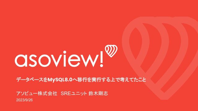 データベースをMySQL8.0へ移行を実行する上で考えてたこと 2023/9/26 アソビュー株式会社 SREユニット 鈴木剛志