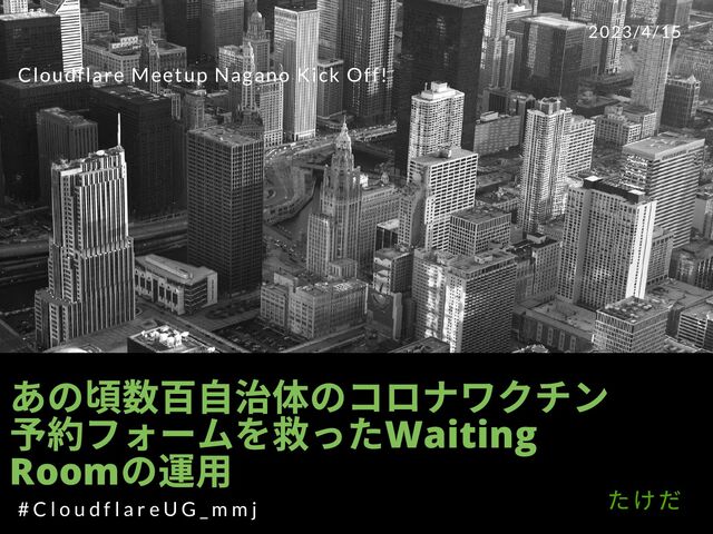 あの頃数百自治体のコロナワクチン 予約フォームを救ったWaiting Room の運用 たけだ 2023/4/15 Cloudflare Meetup Nagano Kick