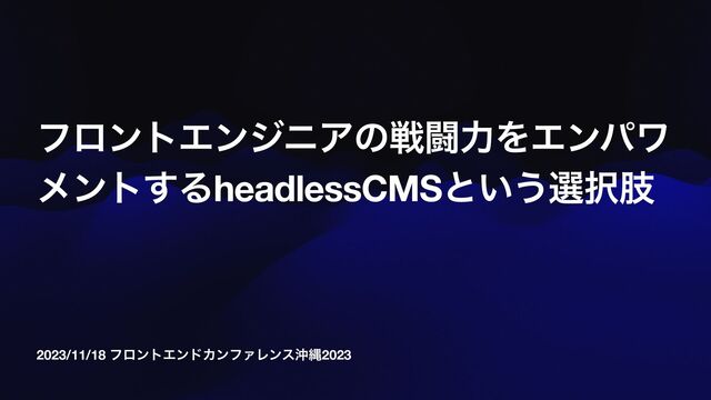2023/11/18 ϑϩϯτΤϯυΧϯϑΝϨϯεԭೄ2023 ϑϩϯτΤϯδχΞͷઓಆྗΛΤϯύϫ ϝϯτ͢ΔheadlessCMSͱ͍͏બࢶ
