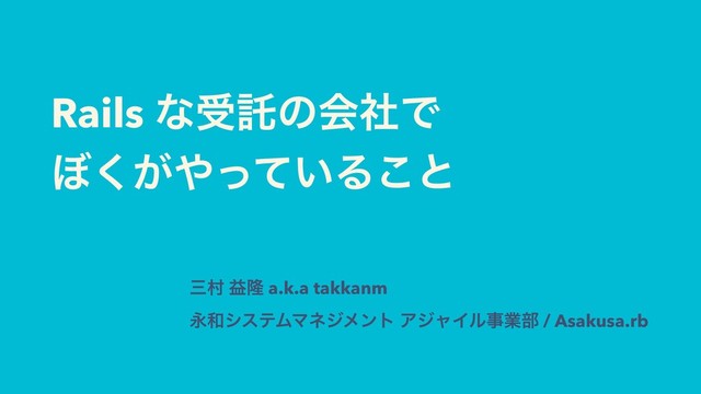 Rails ͳडୗͷձࣾͰ ΅͕͍ͬͯ͘Δ͜ͱ ࡾଜ ӹོ a.k.a takkanm ӬγεςϜϚωδϝϯτ ΞδϟΠϧࣄۀ෦ /
