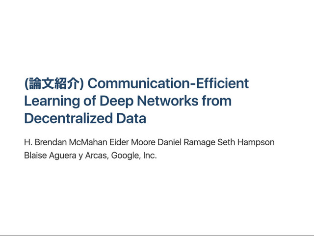 etworks from D ecentralized D ata H . B r endan M c M ahan E ider M oor e D aniel R amage S et h H amps on B lais e A gu er a y A r cas, G oogle, I nc.