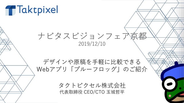 印刷向けの画像検査装置メーカーであるナビタスビジョン様 (https://nvs-one.com/) のプライベートセミナーにて講演致しました。新製品のproofrog (プルーフロッグ) https://proofrog.cloud/ を中心に紹介させて頂きました。