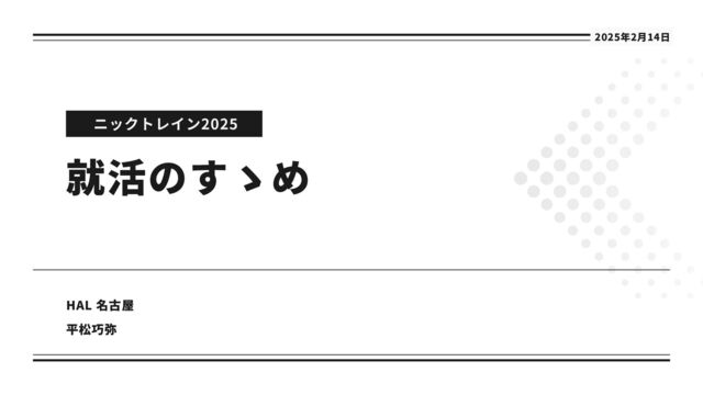 就活のすゝめ ニックトレイン2025 HAL 名古屋 2025年2月14日 平松巧弥