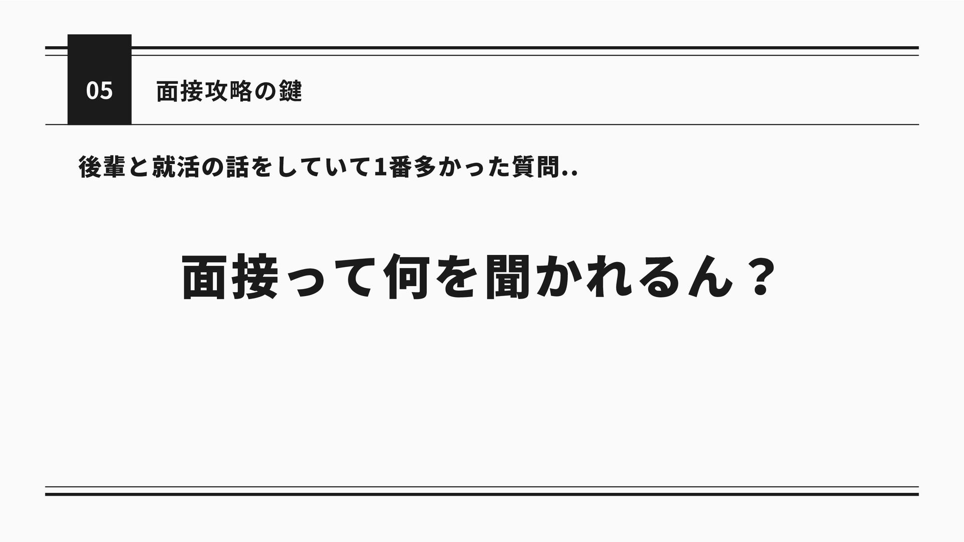 05 面接攻略の鍵 後輩と就活の話をしていて1番多かった質問.. 面接って何を聞かれるん?