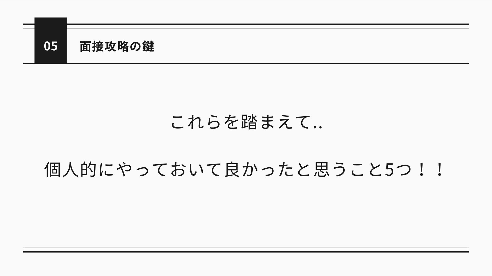 05 面接攻略の鍵 これらを踏まえて.. 個人的にやっておいて良かったと思うこと5つ!!