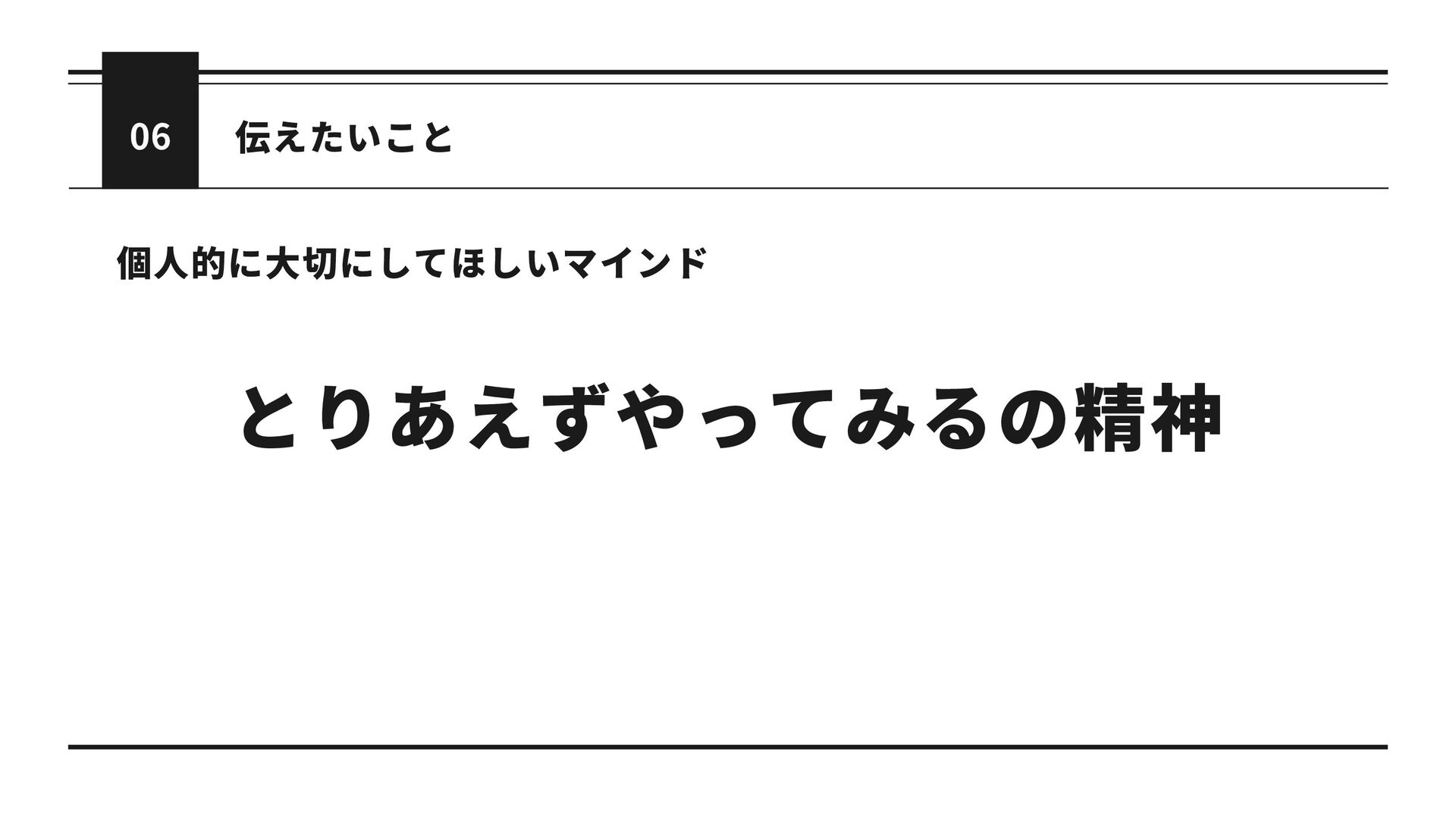 06 個人的に大切にしてほしいマインド とりあえずやってみるの精神 伝えたいこと