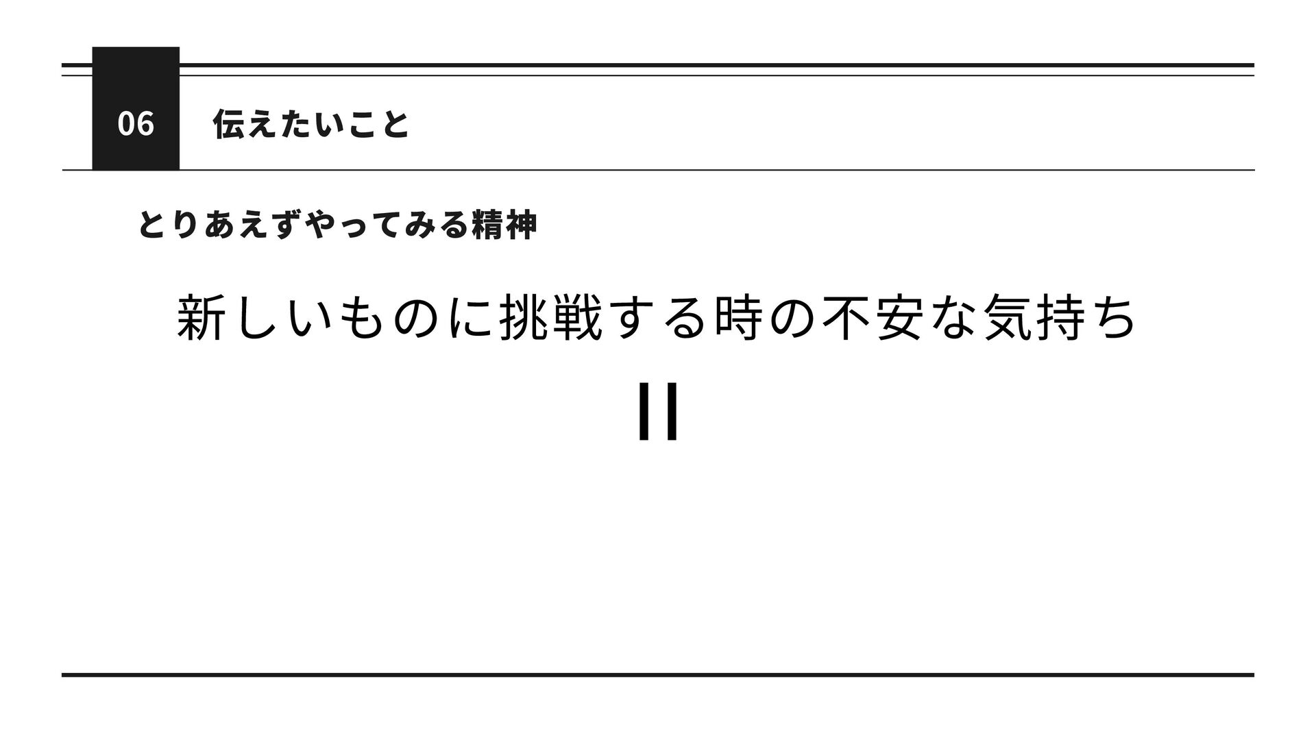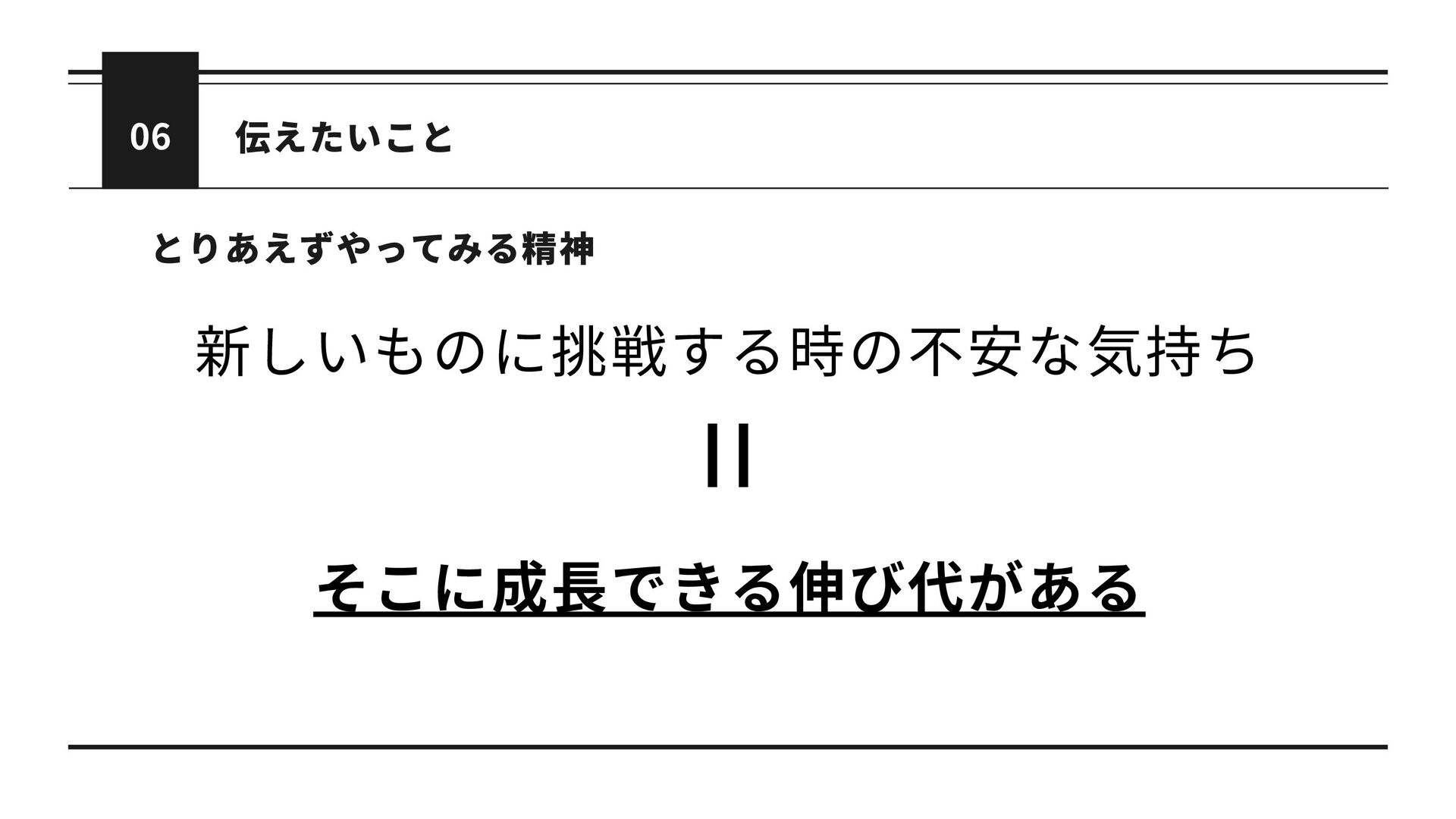 06 とりあえずやってみる精神 伝えたいこと 新しいものに挑戦する時の不安な気持ち そこに成長できる伸び代がある