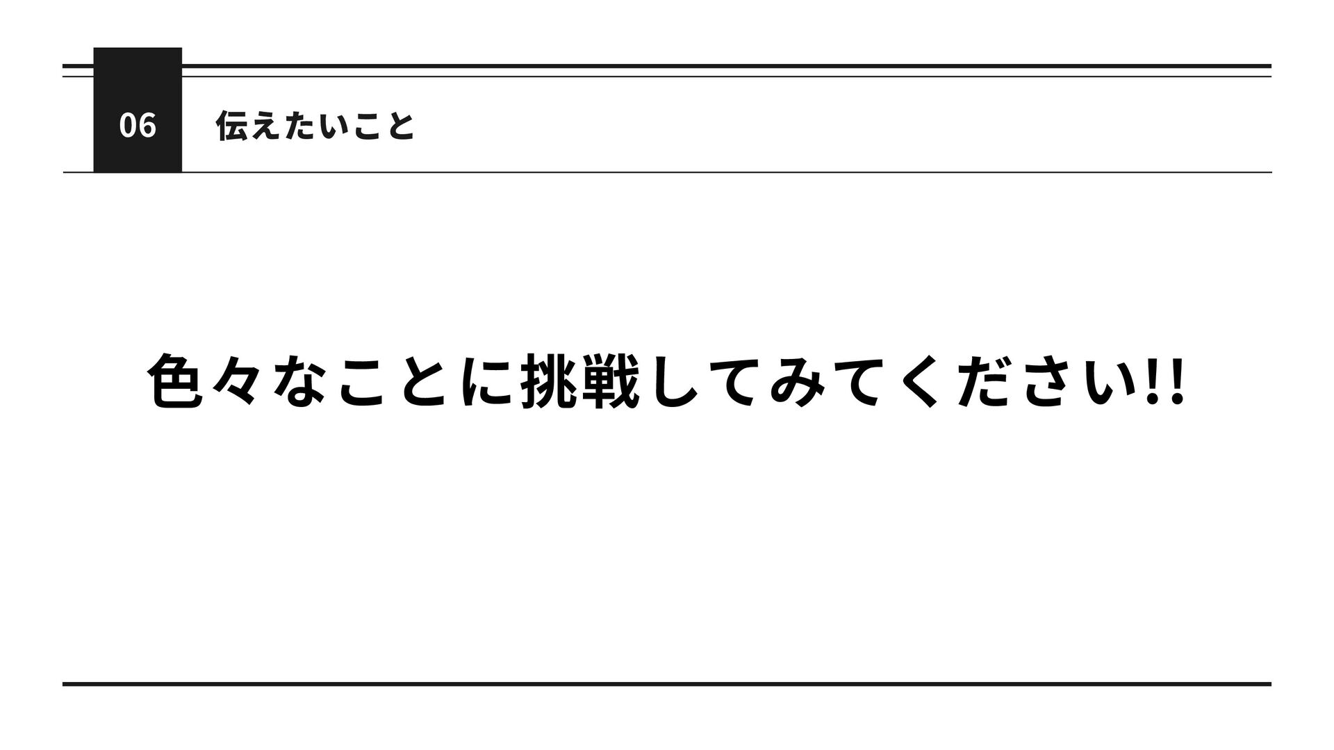 06 伝えたいこと 色々なことに挑戦してみてください!!