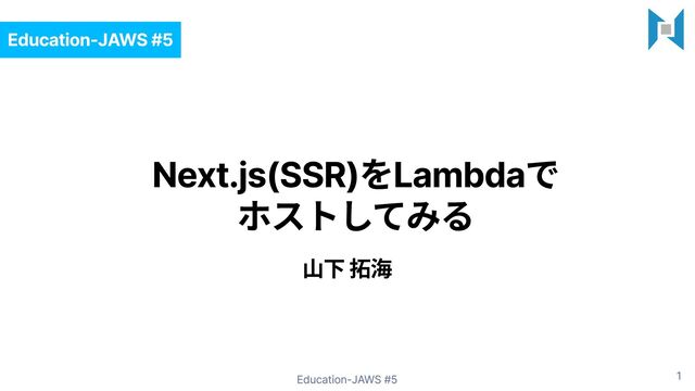 Next.js(SSR)をLambdaで ホストしてみる Education-JAWS #5 山下 拓海 Education-JAWS #5 1