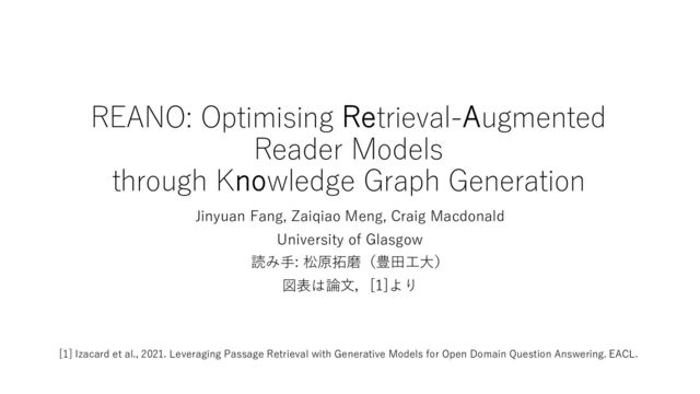 ACL読み会2024@名大 REANO: Optimising Retrieval-Augmented Reader Models through Knowledge Graph Generation