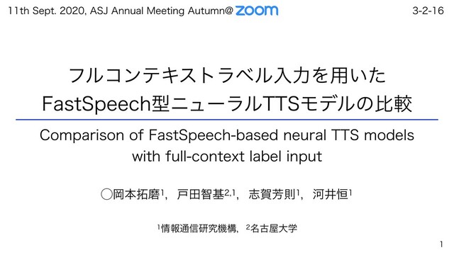 $16Λ༻͍ͨϦΞϧλΠϜχϡʔϥϧ554 -1$/FU!L)[ ˠ5PUBM35'ɿ ,.BUTVCBSB 50LBNPUP 35BLBTIJNB 55BLJHVDIJ 55PEB :4IJHBBOE),BXBJ *OWFTUJHBUJPOPG USBJOJOHEBUBTJ[FGPSSFBMUJNFOFVSBMWPDPEFSTPO$16T z"DPVTU4DJ5FDI BDDFQUFE UPBQQFBS 3FTVMUTPGSFBMUJNFGBDUPST 35'T ͳ݁Ռ͕ಘΒΕ͓ͯΓɼAlignTTS ผωοτϫʔΫΛ༻͍ͯ͠Δɻͦ ͰɼVanilla JDI-T Ҏ֎ɼશͯ (4) ͷܧଓਪఆωοτϫʔΫΛ༻͍ ɻ·ͨɼൺֱͷͨΊɼࣗݾճؼܕϞσ ίϯςΩετϥϕϧೖྗܕ Tacotron erɼBLSTM+Taco2dec[6] ಋೖ͢Δɻ o2dec ʹ 5 छྨͷԻૉΞϥΠϝϯτ Δɻ Ի 23,828 ൃ ( 18 ࣌ؒ) Λֶशηο ετηοτͱ͠ɼαϯϓϦϯάप ͨɻϝϧεϖΫτϩάϥϜจݙ [5, 6] ͠ɼϑʔϨϜγϑτྔ 12.5 ms ͱ͠ ςΩετϥϕϧɼԻૉ 39 ࣍ݩͱΞΫ ࣍ݩͷܭ 48 ࣍ݩͱͨ͠ɻਪఆͨ͠ϝϧ ϥϜΛԻܗͱม͢Δχϡʔϥϧ Table 1 Results of inference real-time factors (RTFs) of neural network models with an NVIDIA Tesla V100 and Intel Xeon 6152 CPUs. “FFT” de- notes feed-forward Transformer. GPU CPUs BLSTM+Taco2dec 0.015 0.21 Tacotron 2 0.063 0.22 Transformer 0.55 3.2 FFT (AlignTTS) 0.005 0.026 FFT (JDI-T) 0.005 0.026 FFT duration model 0.0007 0.0024 WaveGlow 0.066 2.1 ໊ͷਓຊޠޠऀͰ͋Γɼจݙ [5, 6] ͱಉ༷ɼ