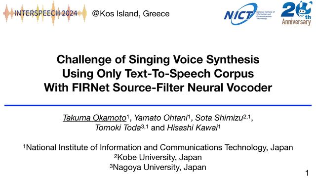 evaluations. The values in the columns for mel-cepstral distortion (MCD) and log fo root-mean-square error (RMSE) are the means and standard deviations. AM and NV represent acoustic model and neural vocoder, respectively. TTS SVS AM NV Input fo shift Acoustic feature MCD [dB] log fo RMSE MCD [dB] log fo RMSE CFS2 HiFi-GAN mel-spectrogram 6.20 ± 0.49 0.22 ± 0.06 11.4 ± 0.83 0.41 ± 0.14 CFS2 HiFi-GAN WORLD 6.39 ± 0.51 0.22 ± 0.06 12.0 ± 1.08 0.41 ± 0.10 PESC HiFi-GAN WORLD 6.35 ± 0.51 0.22 ± 0.06 11.5 ± 1.17 0.37 ± 0.09 PESC HiFi-GAN √ WORLD - - 10.9 ± 0.92 0.57 ± 0.15 CFS2 FIRNet WORLD 6.41 ± 0.50 0.23 ± 0.06 12.2 ± 1.02 0.35 ± 0.10 PESC FIRNet WORLD 6.39 ± 0.49 0.23 ± 0.06 11.6 ± 1.18 0.34 ± 0.09 PESC FIRNet √ WORLD - - 10.5 ± 1.00 0.30 ± 0.11 els. The JSUT-Song corpus was used only for evaluating the SVS model. Following the procedure established for ESPnet2- TTS [8], 4,500 utterances, 250 utterances, and 250 utterances were used for the training set, validation set, and test set for TTS, respectively. For TTS in Japanese, the G2P function based on pyopenjtalk and enhanced with prosody symbols [34] was used, following [8, 11]. For the subjective evaluations of TTS, 10 utterances were randomly selected. For the objective and subjective evaluations of SVS, the first phrases of 10 songs from lated by the ESPnet2-TTS toolkit [8, 9]. To evaluate the syn- thesized TTS and SVS speech subjectively, mean opinion score (MOS) tests [38] were conducted for (a) normal TTS, (b) nor- mal SVS, (c) T × 0.5 SVS (240 beats per minute), (d) fo × 0.5 SVS (−1 octave), and (e) fo × 2.0 SVS (+1 octave). In (d) and (e), fo was controlled before the neural vocoders. Each sub- ject evaluated 200 samples: 10 utterances × 20 models. The naturalness of each sample was rated on a five-point scale: (1) bad, (2) poor, (3) fair, (4) good, and (5) excellent. Twenty adult