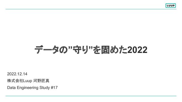 データの”守り”を固めた2022 2022.12.14 株式会社Luup 河野匠真 Data Engineering Study #17