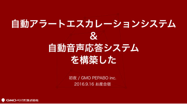 ॳ(.01&1"#0JOD ͓࢈߹॓ ࣗಈΞϥʔτΤεΧϨʔγϣϯγεςϜ ˍ ࣗಈԻԠγεςϜ Λߏஙͨ͠