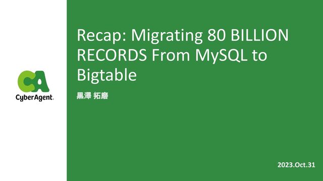 https://github.com/TakumaKurosawa/Migrating-80-BILLION-RECORDS-From-MySQL-to-Bigtable