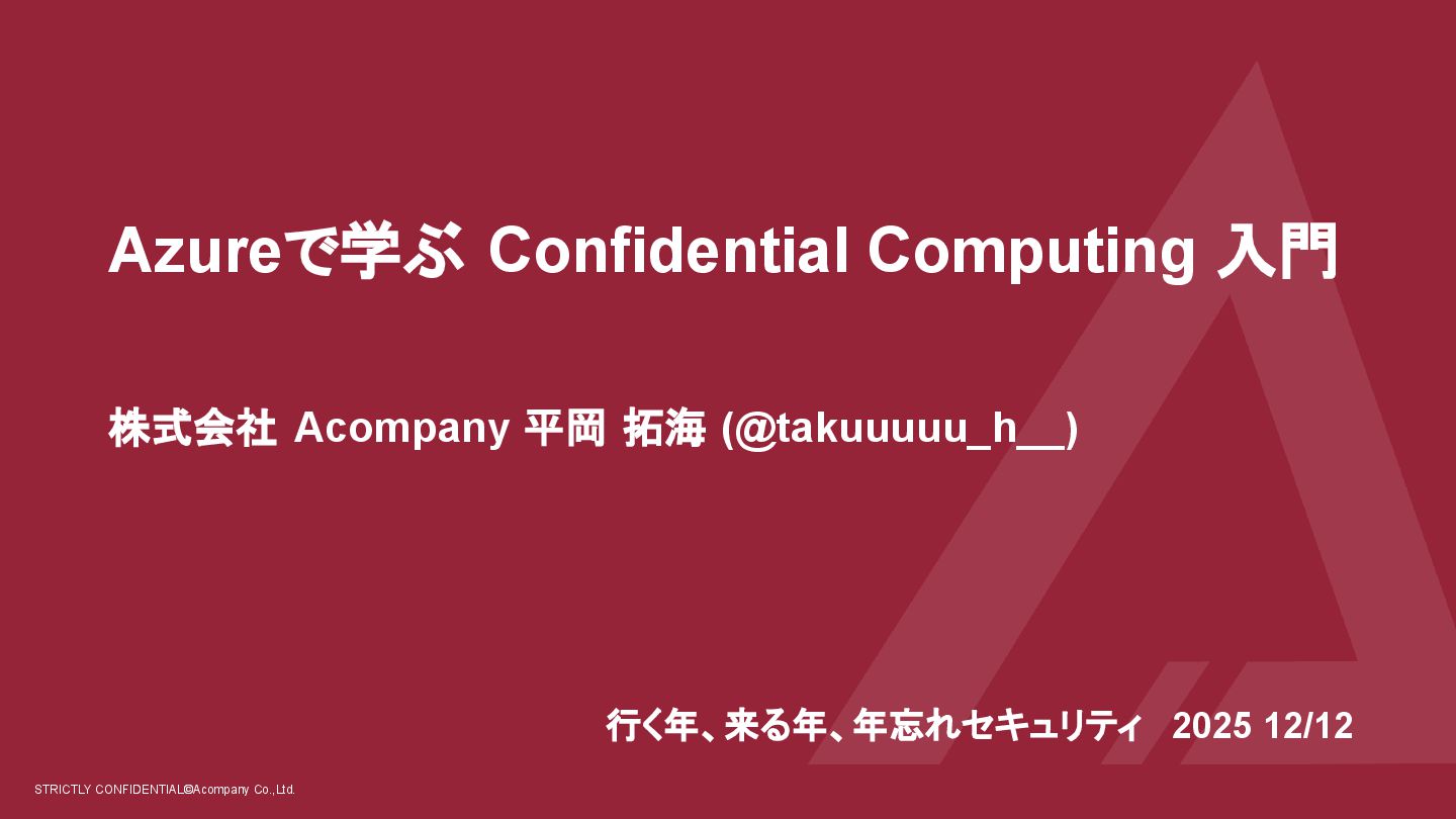 STRICTLY CONFIDENTIAL©Acompany Co.,Ltd. 1 STRICTLY CONFIDENTIAL©Acompany Co.,Ltd. Azureで学ぶ Confidential Computing