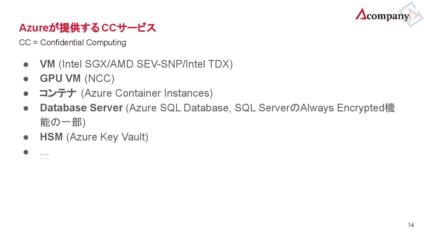 ©Acompany Co.,Ltd. 13 Azure Confidential Computing