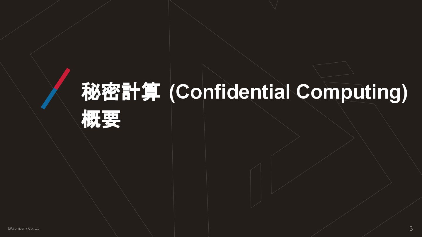 ©Acompany Co.,Ltd. 3 秘密計算 (Confidential Computing) 概要