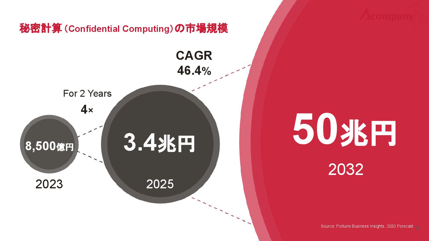 2 Years 秘密計算(Confidential Computing)の市場規模 Source: Fortune Business Insights, 2032 Forecast 4