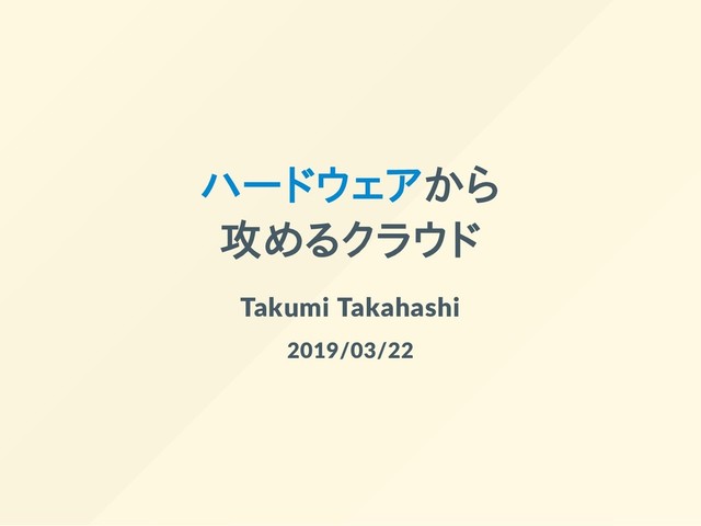 ハードウェアから 攻めるクラウド Takumi Takahashi 2019/03/22