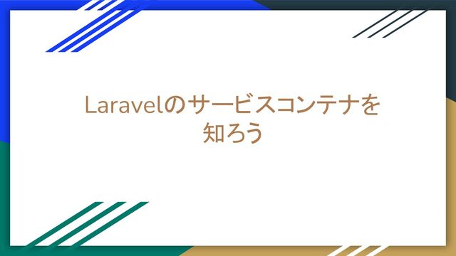 まとめ ・サービスコンテナは、クラスの依存関係を管理できる箱 ・依存関係がないと、使う側と使われる側を切り離すことができる ・疎結合になり、柔軟性が増す ・単体テストが書きやすくなる