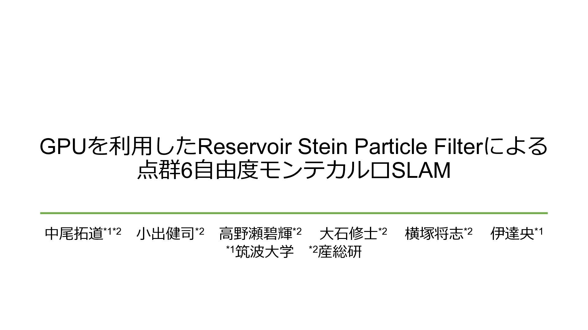 GPUを利用したReservoir Stein Particle Filterによる 点群6自由度モンテカルロSLAM 中尾拓道*1*2 小出健司*2 高野瀬碧輝*2 大石修士*2 横塚将志*2