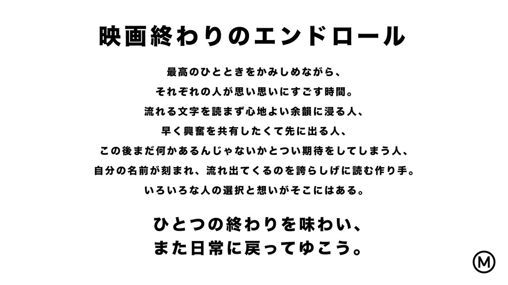 ͍ࢥ͍ ʹ࣌ؒ͢͢͝ɻ ྲྀΕ Δจ ࣈΛಡ · ͣ৺ Α͍༨ӆʹਁΔਓɺ ૣ͘ ڵฃ Λڞ༗ ͠ ͨͯ͘ ઌʹग़Δਓɺ ͜ ͷ ޙ· ͩԿ͔ ͋ ΔΜ͡ Ό ͳ͍͔ͱ͍ͭظΛͯ͠ ͠· ͏ਓɺ ࣗ ͷ໊ લ͕ࠁ · Εɺྲྀ Ε ग़ͯ͘Δ ͷΛ ތΒ ͛͠ ʹಡ Ή࡞Γखɻ ͍Ζ ͍Ζ ͳਓͷ બ ͱ ͍͕ͦ͜ʹ͋Δɻ өըऴΘΓͷΤ ϯυϩʔϧ ͻͱͭͷऴΘΓΛຯΘ͍ɺ ·ͨৗʹͬͯΏ͜͏ɻ