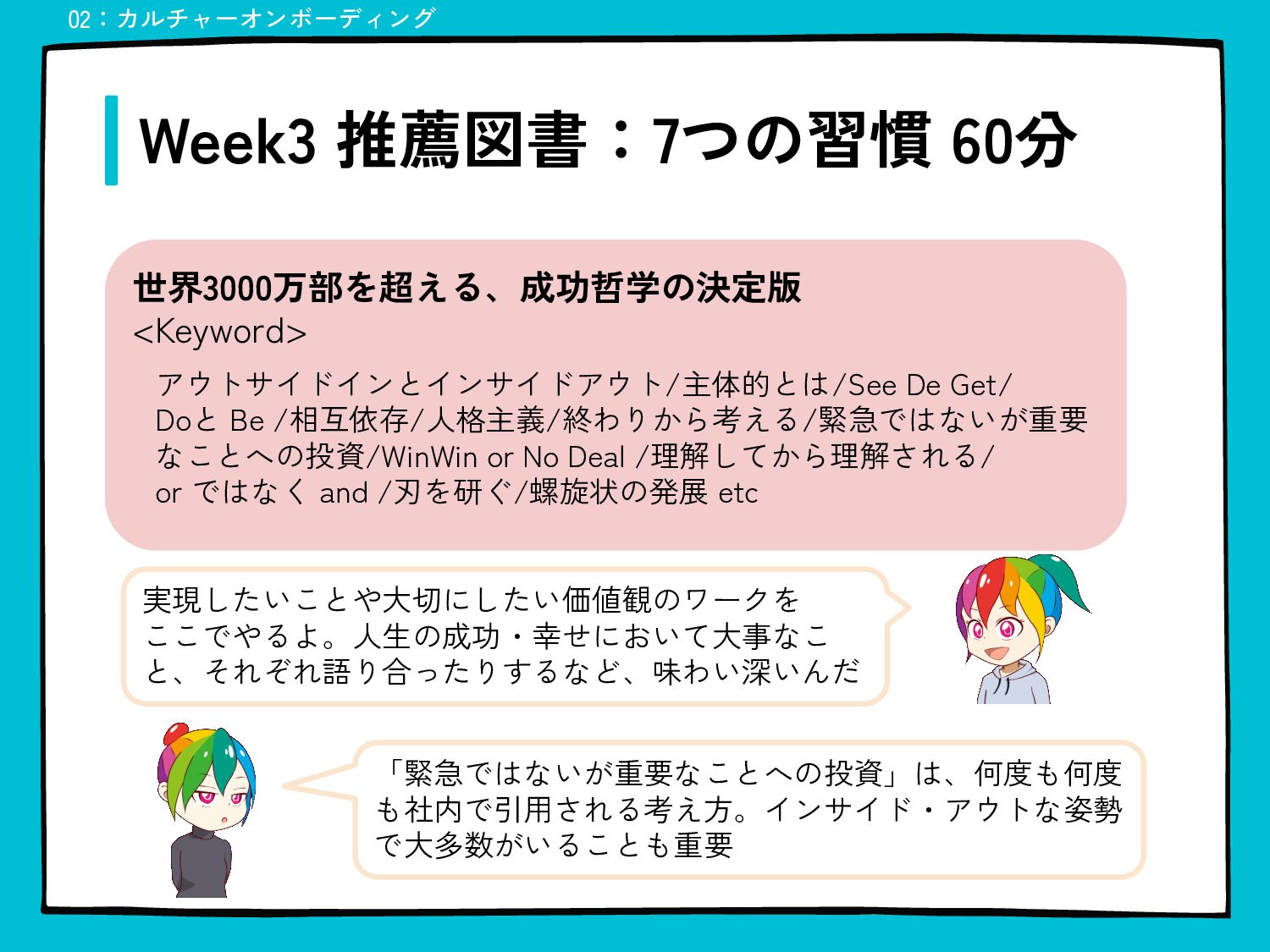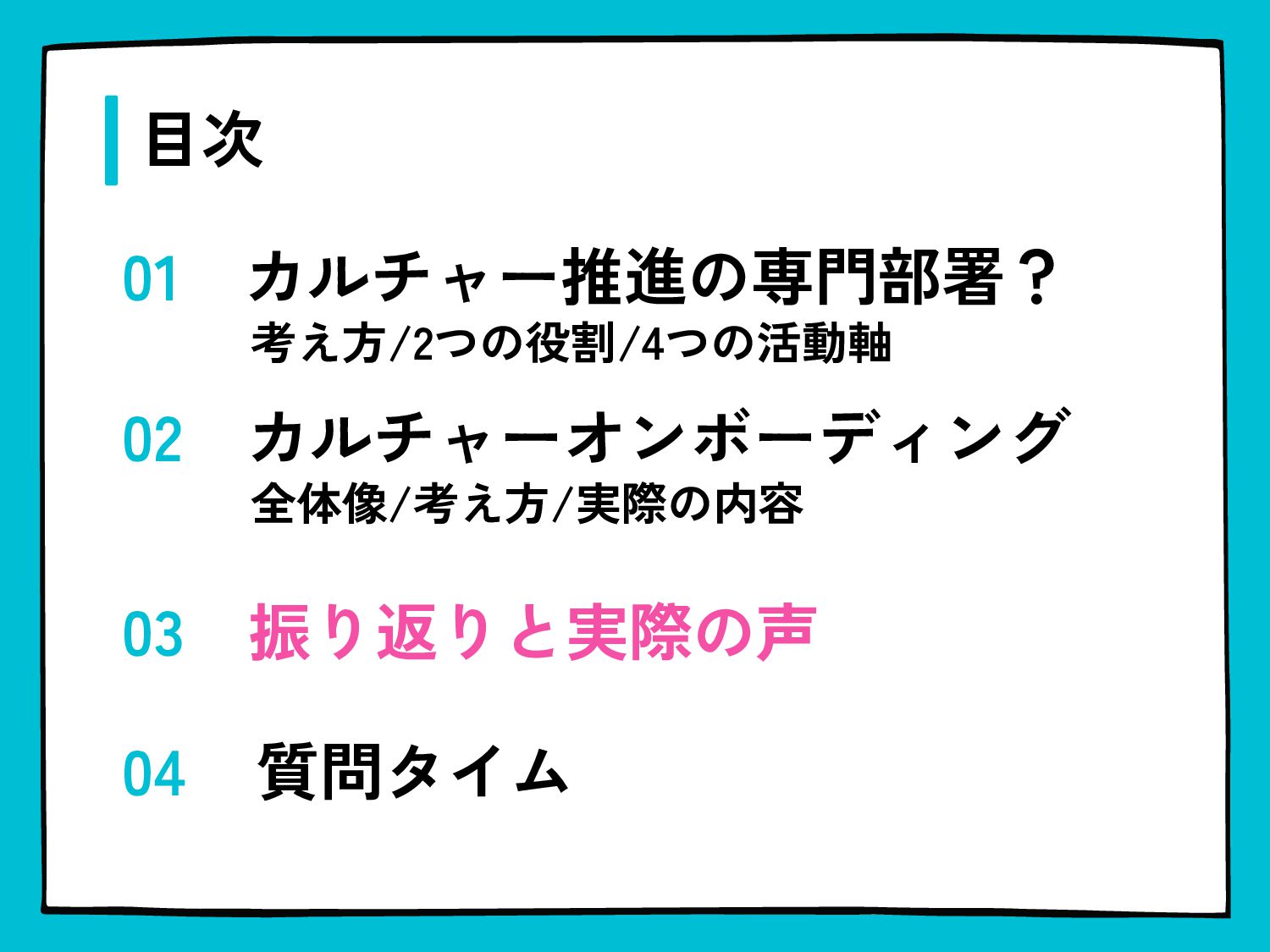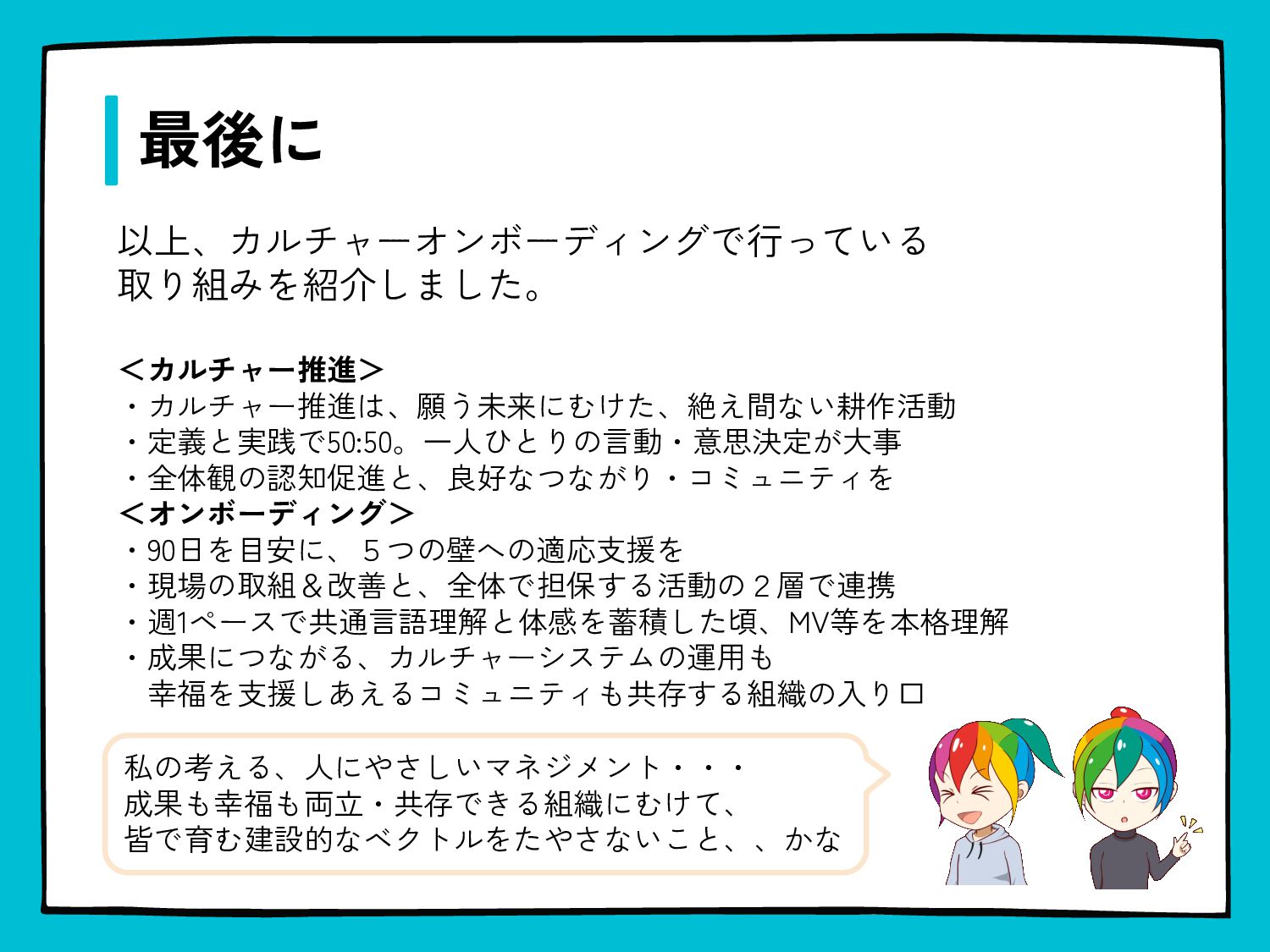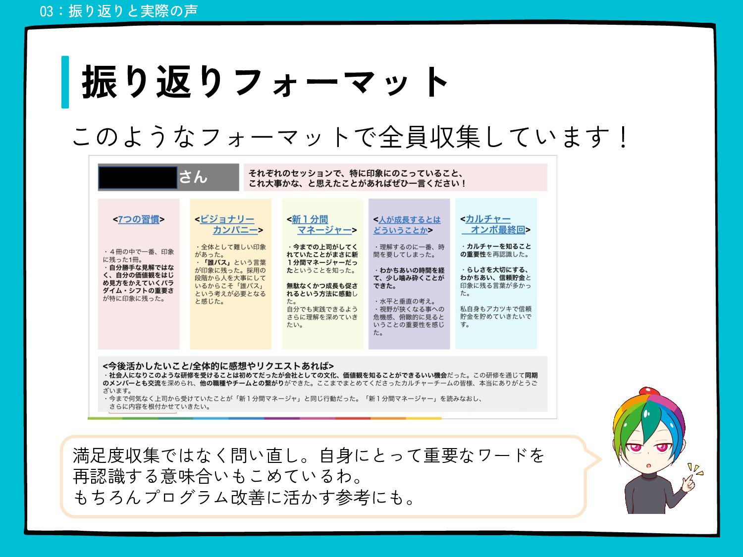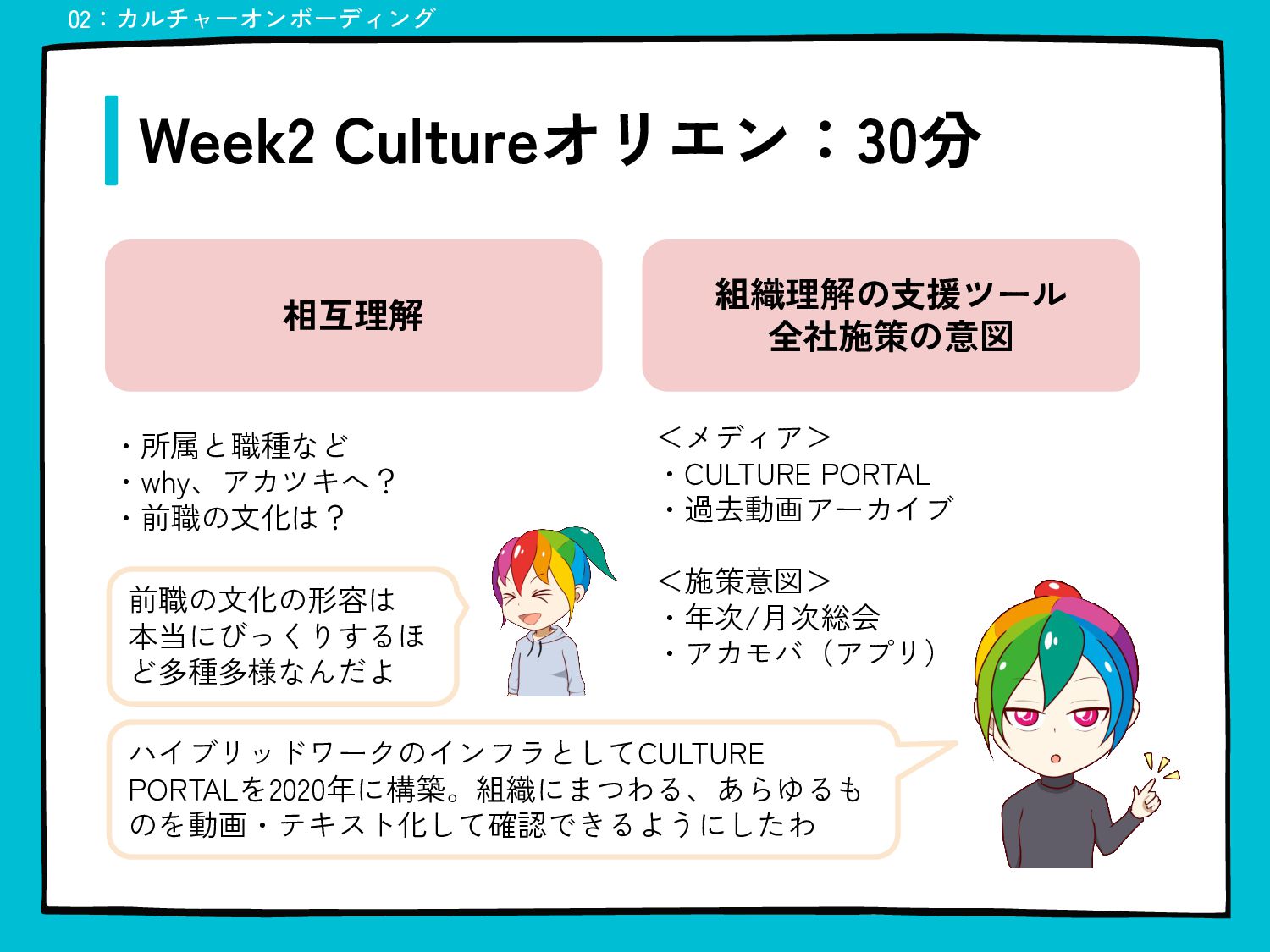 転職したての頃の不安感をカバーしてくれただけで なく、同期入社の方々とのコミュニケーションも行え てとても良いオリエンテーションだったと思います。 今後、学んだ理念を自身に浸透させてしっかりと根 付いていけるように頑張りたいと思います。 私自身、今まであまりこういう文化面を気にして 就業したことがなかったのですが、アカツキでは 非常に多くの人が文化を大切にしていると感じ ています。その共通認識がみんなで協力して仕 事を前に進めていける要素にもなっているんだ ろうなと思うので、日々の業務の中でふとした時 に思い出していきたいです。 ここまでしっかり会社の文化について学ぶ機会もなかった ので面白かったです。 最初に推薦図書があると聞いたときは軽く引きましたけど、 学んでいくとこれまでの経験で感じたことなどとも類似する こともあり、思った以上に納得することが多かった ので最後 まで関心を持って取り組めました。 コーポレートを経験してきた者の視点からすると、 会社の思想がここまでまとめられていること自体が驚嘆に値する と 感じています。一連の施策を通して共有いただいた内容は、 今後の行動と言動のすべてに活きる と思います。
