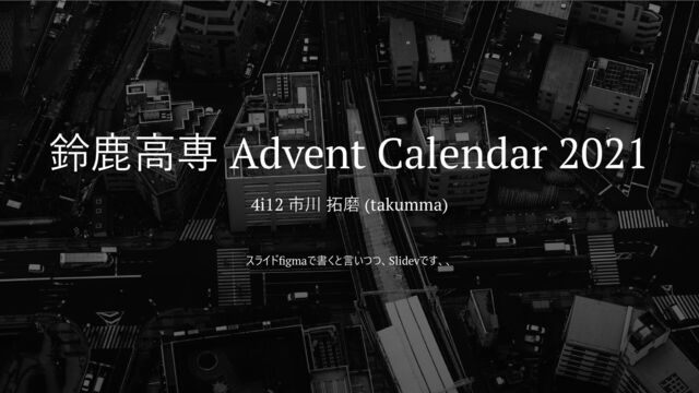 鈴鹿高専 Advent Calendar 2021 4i12 市川 拓磨 (takumma) スライドfigmaで書くと言いつつ、Slidevです、、