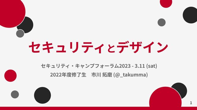 セキュリティとデザイン セキュリティ・キャンプフォーラム2023 - 3.11 (sat) 2022年度修了生 市川 拓磨 (@_takumma) 1