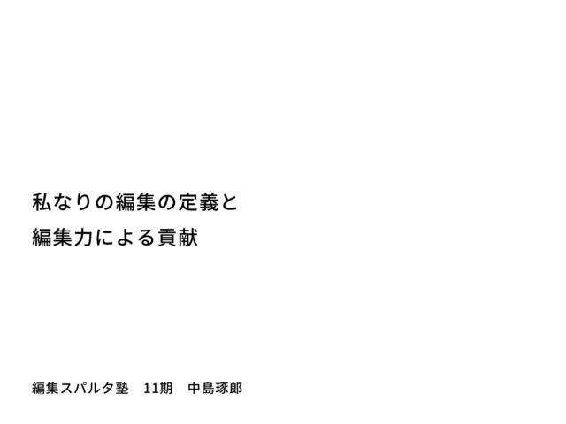 私なりの編集の定義と 編集⼒による貢献 編集スパルタ塾 11期 中島琢郎
