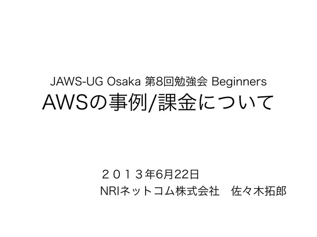 2013年6月の第8回JAWSUG大阪の発表資料。AWSの事例/課金について