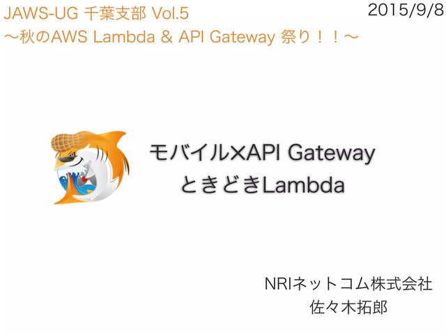 JAWSUG千葉のAWS Lambda & API Gateway祭りの資料です