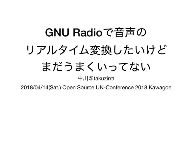 GNU RadioͰԻͷ ϦΞϧλΠϜม͍͚ͨ͠Ͳ ·ͩ͏·͍ͬͯ͘ͳ͍ தˏtakuzirra 2018/04/14(Sat.) Open Source UN-Conference 2018