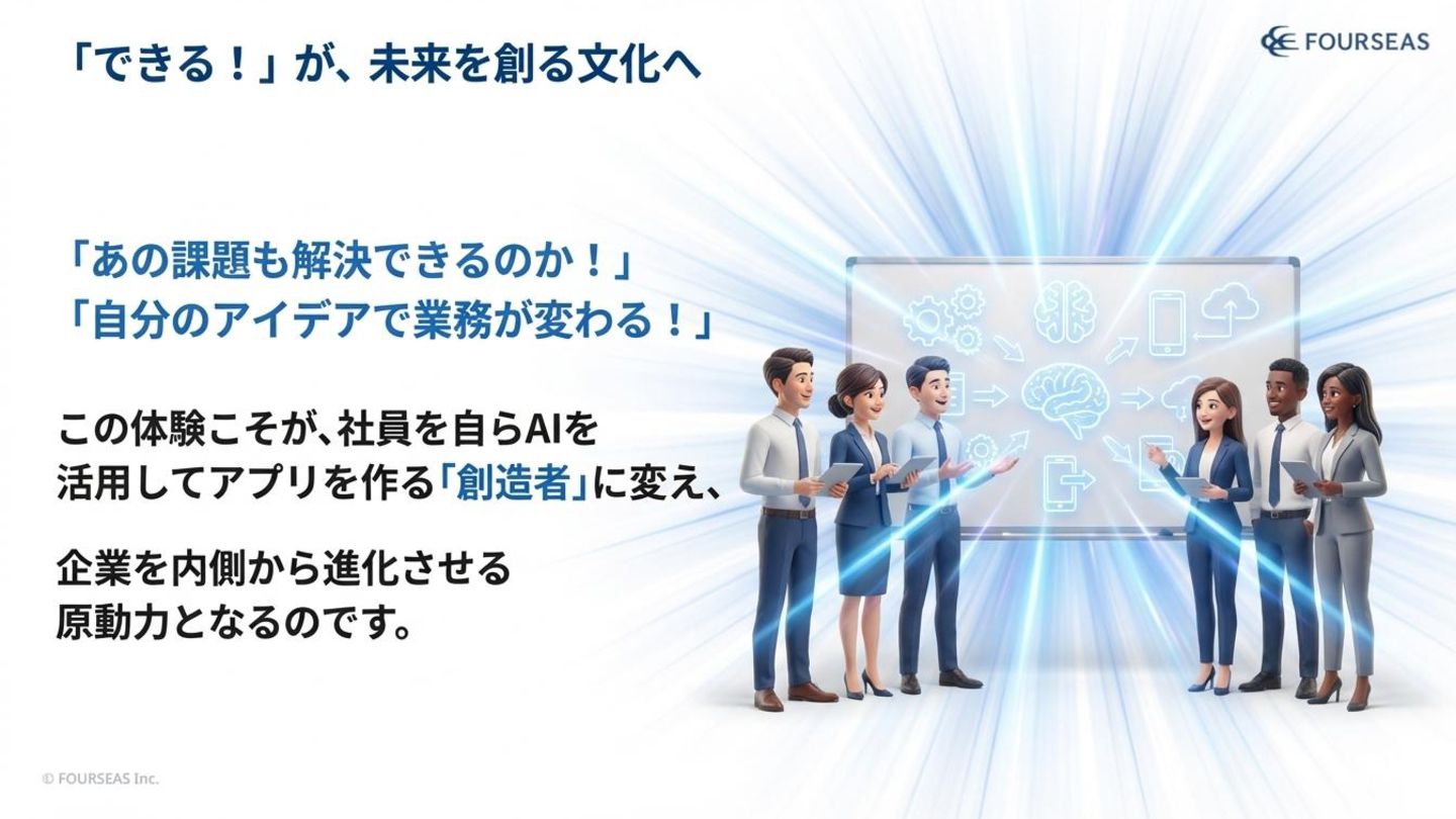 © FOURSEAS Inc. 13 AIを活用したスピード開発 変化の激しいAIトレンドを常にキャッチアップし最適化。 品質の要件レベルを見極めながら AIを最大限に組み込むことで、信頼性と圧倒的な開発スピードを両立 します。
