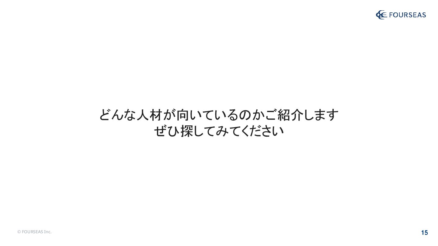 © FOURSEAS Inc. 15 15 どんな人材が向いているのかご紹介します ぜひ探してみてください
