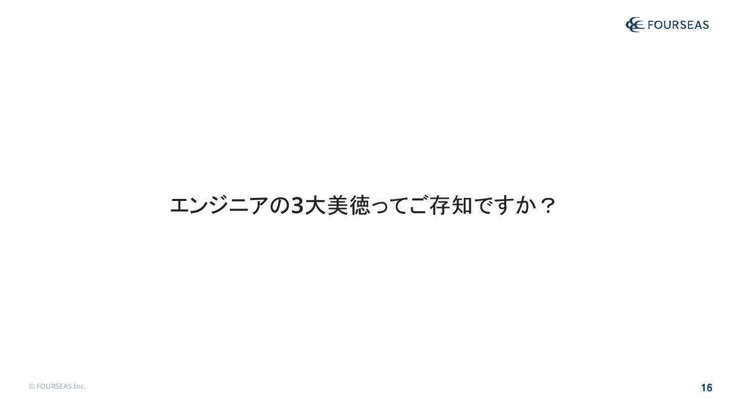 © FOURSEAS Inc. 16 16 エンジニアの3大美徳ってご存知ですか?