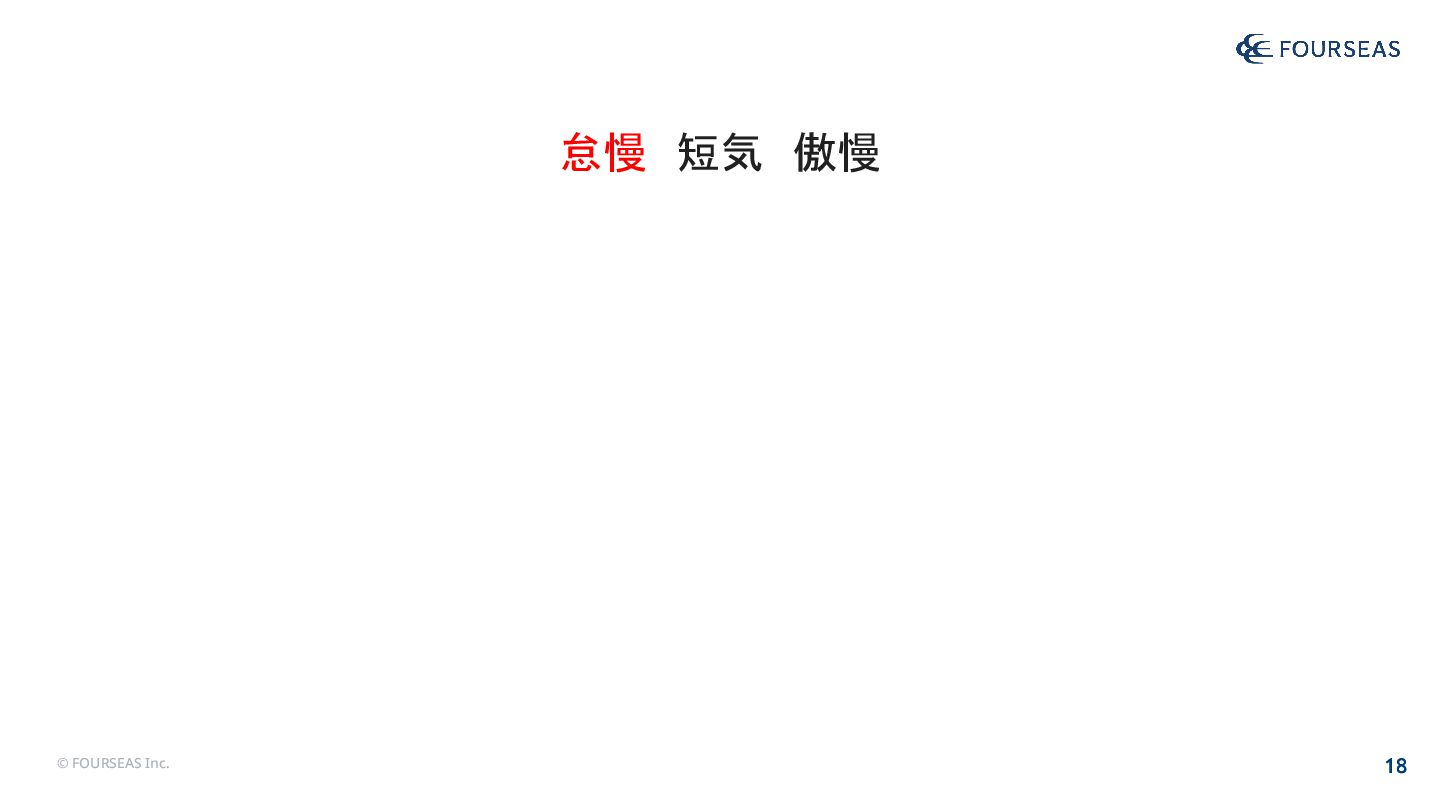 © FOURSEAS Inc. 18 18 怠慢 短気 傲慢