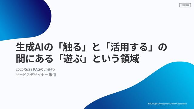 GASのデプロイ手順まで教えてくれd v 動画生成は料金高すぎて割に合わない v コードにエラーはないけど、局所解になりがs v 油断すると曲風が海外ロックっぽくなる 成果物のクオリティ の肌感がわかる KDDI Agile Development Center Corporation 公開情報 この気づき、生成AIの活用を考える時に必須の情報では?