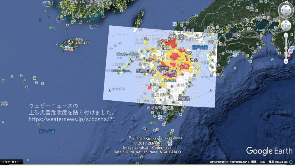 ウェザーニュースの ⼟砂災害危険度を貼り付けました。 https:/weaternews.jp/s/dosha/?1