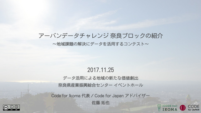 2017.11.25 データ活用による地域の新たな価値創出 @ 奈良県産業振興総合センター アーバンデータチャレンジ2017 奈良ブロックの紹介