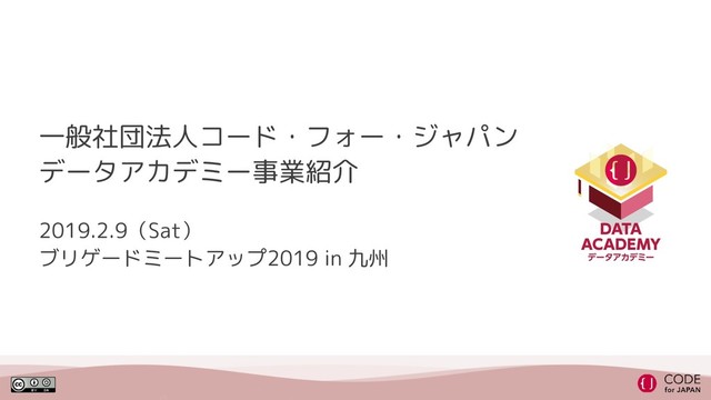 ・Code for Japanのデータアカデミー事業紹介 ・データアカデミー報告会 in 芦屋 速報レポート ・福岡市データアカデミー紹介 ・パネルディスカッション(データアカデミー実践者による)