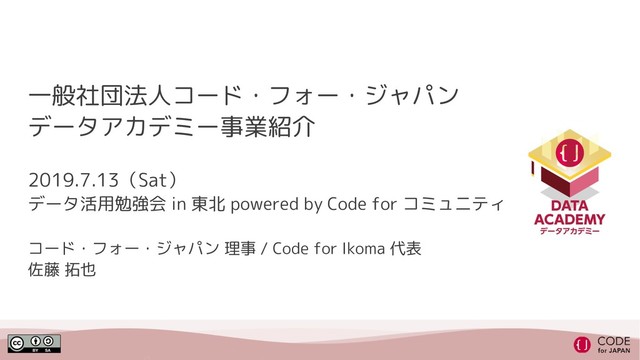 2019.7.13 データ活用勉強会 in 東北 powered by Code for コミュニティ (ブリゲードミートアップ2019東北)
