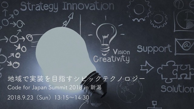 2018.9.23 Code for Japan Summit 2018 in 新潟 セッション「地域で実装を目指すシビックテクノロジー」で使用した、モデレーターの資料です。 各スピーカーから、実践内容をプレゼンしていただいた後にパネルディスカッションを行いました。各スピーカーの資料は、ここには含まれていません。