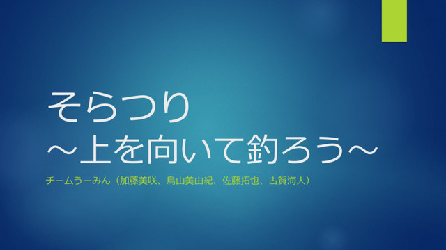 そらつり 〜上を向いて釣ろう〜 チームうーみん(加藤美咲、⿃⼭美由紀、佐藤拓也、古賀海⼈)