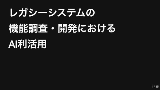 レガシーシステムの 機能調査・開発における AI 利活用 1 / 15