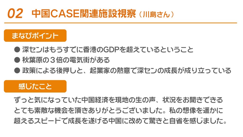 02 தࠃ$"4&ؔ࿈ࢪઃࢹʢౡ͞Μʣ ·ͳͼϙΠϯτ ײͨ͜͡ͱ ˔ਂηϯ͏͢Ͱʹ߳ߓͷ(%1Λ͍͑ͯΔͱ͍͏͜ͱ ˔ळ༿ݪͷ̏ഒͷిؾ͕֗͋Δ ˔ࡦʹΑΔޙԡ͠ͱɺىۀՈͷҙͰਂηϯͷ͕Γཱ͍ͬͯΔ ͣͬͱؾʹͳ͍ͬͯͨதࠃܦࡁΛݱͷੜͷɺঢ়گΛ͓ฉ͖Ͱ͖Δ ͱͯૉఢͳػձΛ͖͋Γ͕ͱ͏͍͟͝·ͨ͠ɻࢲͷ૾Λང͔ʹ ͑ΔεϐʔυͰΛ͛ΔதࠃʹվΊͯڻ͖ͱࣗলΛײ͡·ͨ͠ɻ