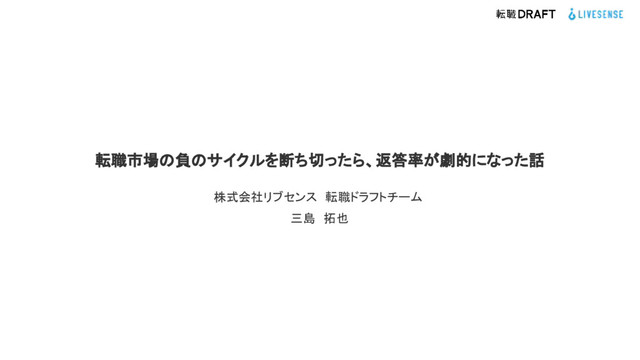 転職市場の負のサイクルを断ち切ったら、返答率が劇的になった話 株式会社リブセンス 転職ドラフトチーム 三島 拓也