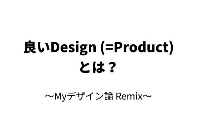 良いDesign (=Product) とは? 〜Myデザイン論 Remix〜